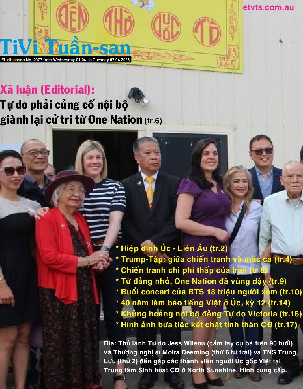(TiVi Tuần-san) – Ngày Thứ Hai 26/1 Cộng đồng Người Việt Tự do Tiểu bang Victoria đã tổ chức mừng Australia Day (Quốc khánh Úc) tại Trung tâm Sinh hoạt…