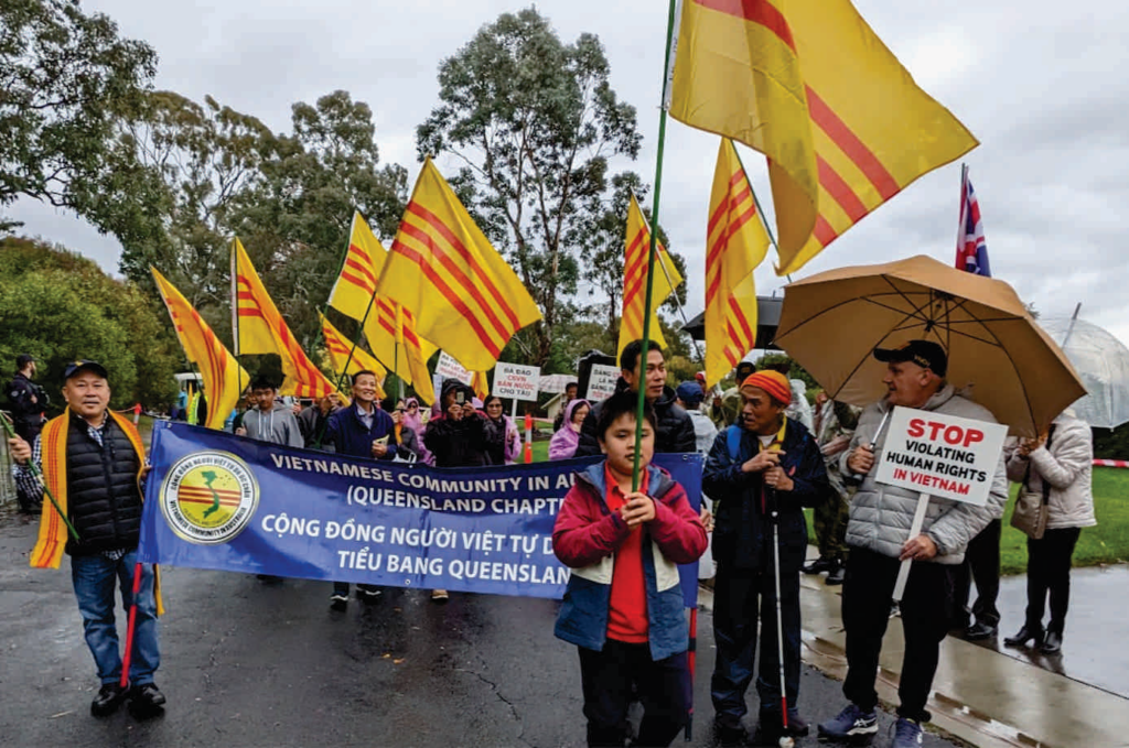Đoàn biểu tình từ Tiểu bang Queensland là nhóm cuối cùng tiến tới trước tòa đại sứ CSVN trước khi cuộc biểu tình chính thức bắt đầu. Hình: etivituansan