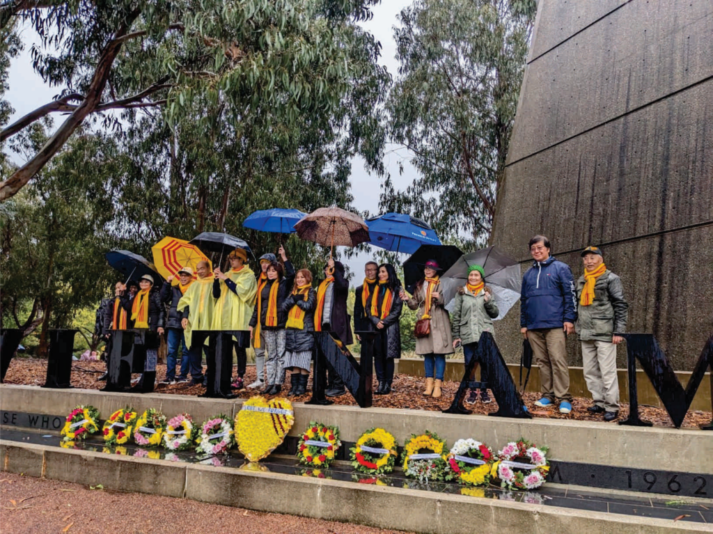 Sau cuộc biểu tình trước tòa đại sứ, tất cả đã qua đài tưởng niệm Australian Vietnam Forces National Memorial để đặt vòng hoa tri ân binh sĩ Úc đã chiến đấu ở Việt Nam trong đó có 521 người hy.