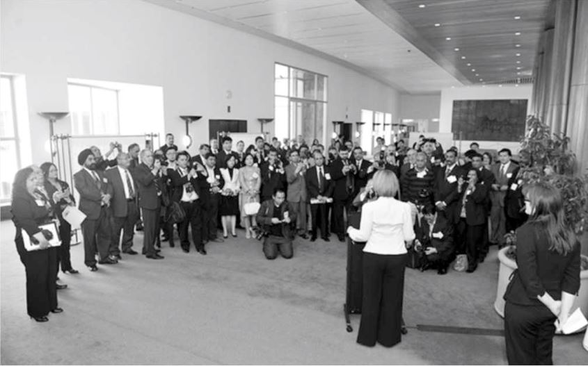 TT Gillard nói chuyện với báo chí sắc tộc tại Mural Hall. Hình: Văn phòng Thượng nghị sĩ Lundy cung cấp
