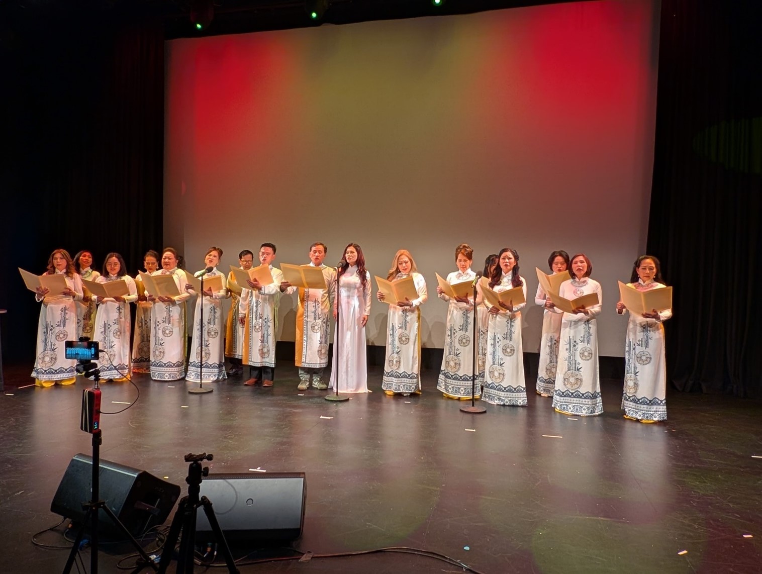 Hợp ca “Dòng Máu Việt Nam” và “Thank You Australia” chấm dứt chương trình dài hai tiếng đồng hồ, tối Thứ Bảy 29/11/2025. Xuất thứ hai.  Hình: TVTS