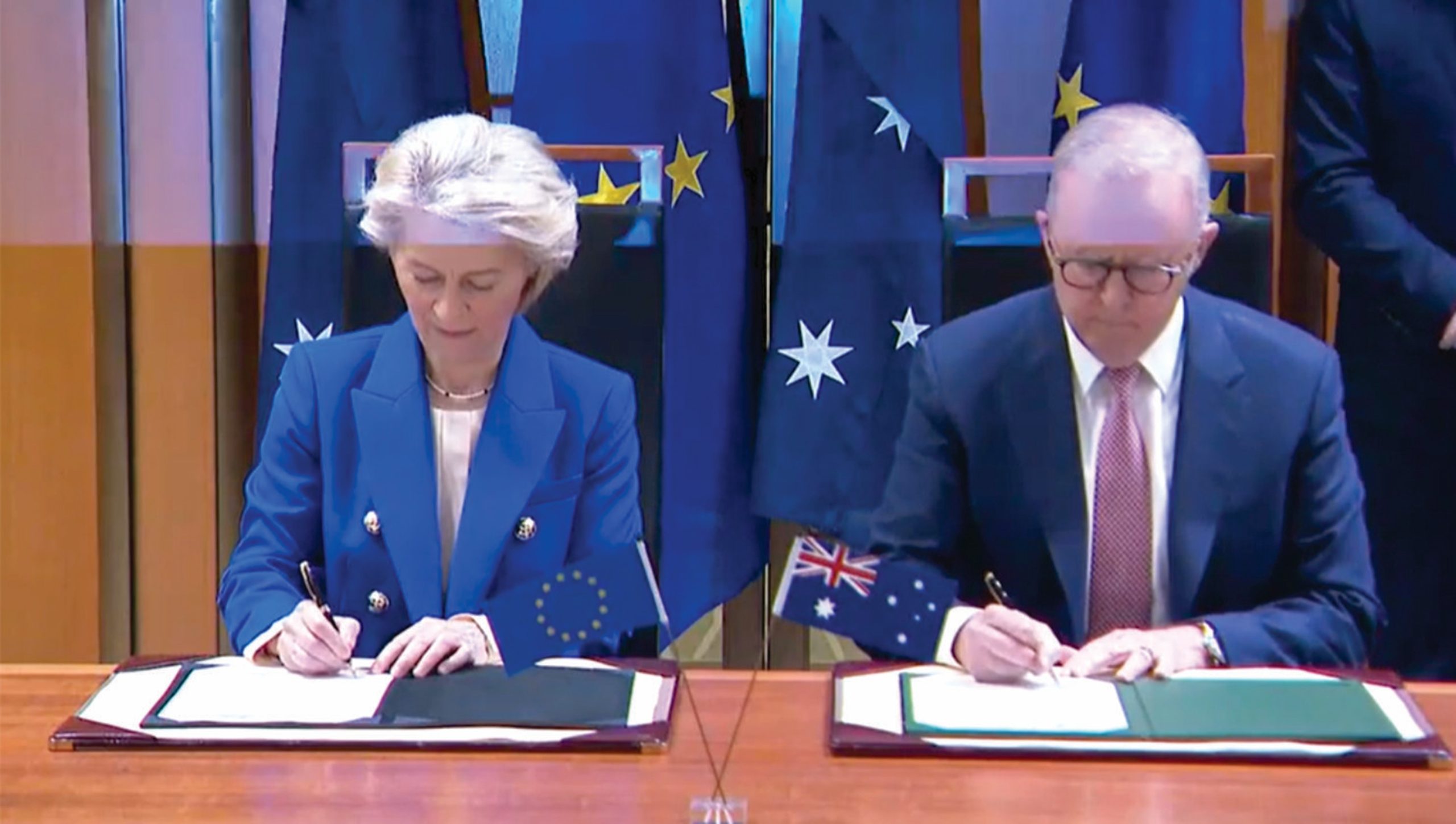 Thủ tướng Anthony Albanese (phải) và Chủ tịch Ủy ban châu Âu Ursula von der Leyen ký hiệp định thương mại tự do tại Canberra. Hình: 9News’ screenshot Sau gần 10 năm thương lượng, Úc và Liên minh châu Âu (EU) đã chính thức hoàn tất hiệp định thương mại tự do (FTA), được Thủ tướng Anthony Albanese và Chủ tịch Ủy ban châu Âu Ursula von der Leyen ký kết tại Canberra. Chính phủ Úc cho rằng thỏa thuận này có thể giúp nền kinh tế tăng thêm khoảng 10 tỷ đô la mỗi năm.