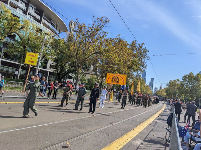 Phái đoàn Cựu Chiến binh Quân lực Việt Nam Cộng hòa luôn có mặt trong những cuộc diễn hành Anzac Day 25/4 hằng năm tại Melbourne. Hình: TVTS