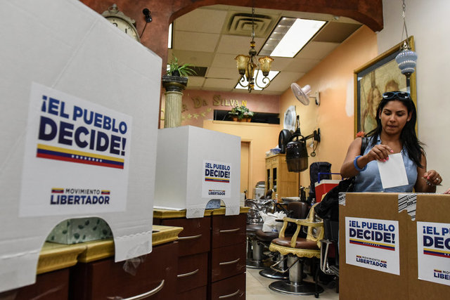 Phe đối lập kiểm phiếu tại một điểm bỏ phiếu trong cuộc trưng cầu ý dân không chính thức phản đối chính phủ của tổng thống Nicolas Maduro tại thủ đô Caracas. Photo Courtesy: Reuters Một nữ y tá 61 tuổi bị bắn chết trong khi chờ bỏ phiếu tại cuộc trưng cầu dân ý không chính thức do phe đối lập tổ chức tại thủ đô Caracas, Venezuela.