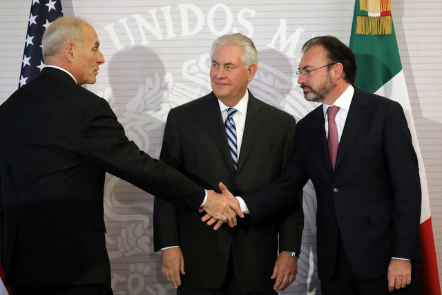 Bộ trưởng An ninh Nội địa Mỹ John Kelly và Ngoại trưởng Rex Tillerson ngày 23.2 đã gặp các bộ trưởng Mễ Tây Cơ và nhận được sự “quan ngại và khó chịu” vì lập trường hiếu chiến của ông Trump trong quan hệ thương mại và nhập cư với Mễ Tây Cơ.
