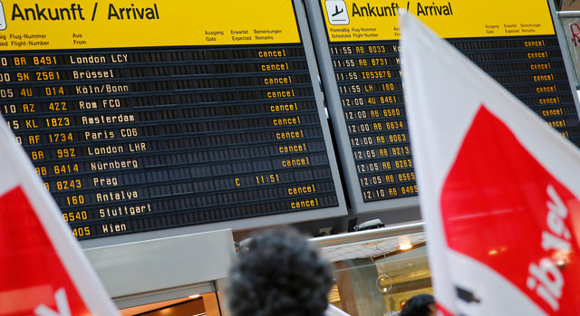 Hãng hàng không Lufthansa cho biết hãng này sẽ hủy bỏ tất cả các chuyến bay từ Frankfurt, Munich đến Berlin và từ Berlin đến tất cả các thành phố khác vào ngày 13/3. Lufthansa không nói rõ có bao nhiêu chuyến bay bị hủy.