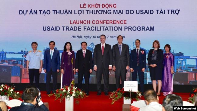 Cơ quan Phát triển quốc tế Hoa Kỳ (USAID) khởi động Dự án Tạo thuận lợi thương mại trị giá 21,78 triệu đôla bằng cách giúp Việt Nam giảm thời gian thông quan hàng hóa xuất nhập khẩu, ngày 10/7/2019. Photo courtesy: US Embassy Hanoi
