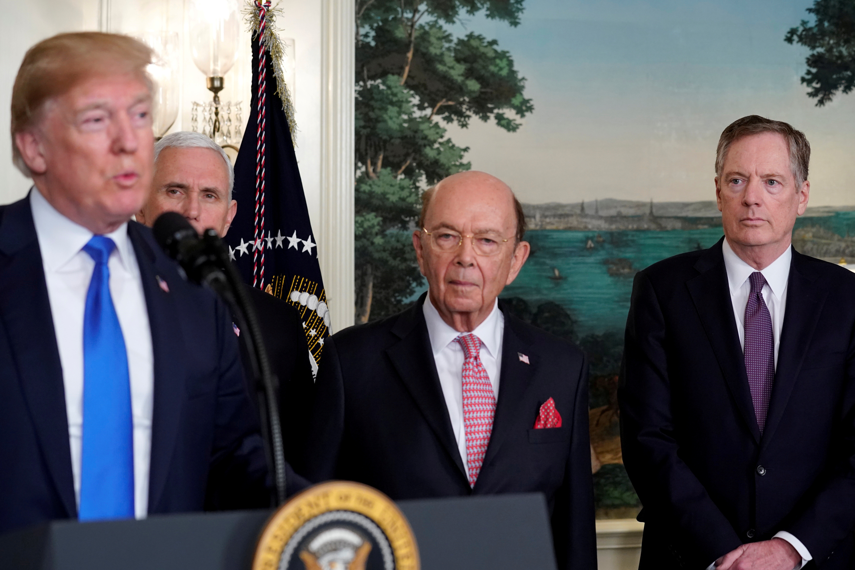 Đại diện Thương mại Mỹ Robert Lighthizer (phải) đã bày tỏ sự ủng hộ hành động của ông Donald Trump. Photo Courtesy: Reuters