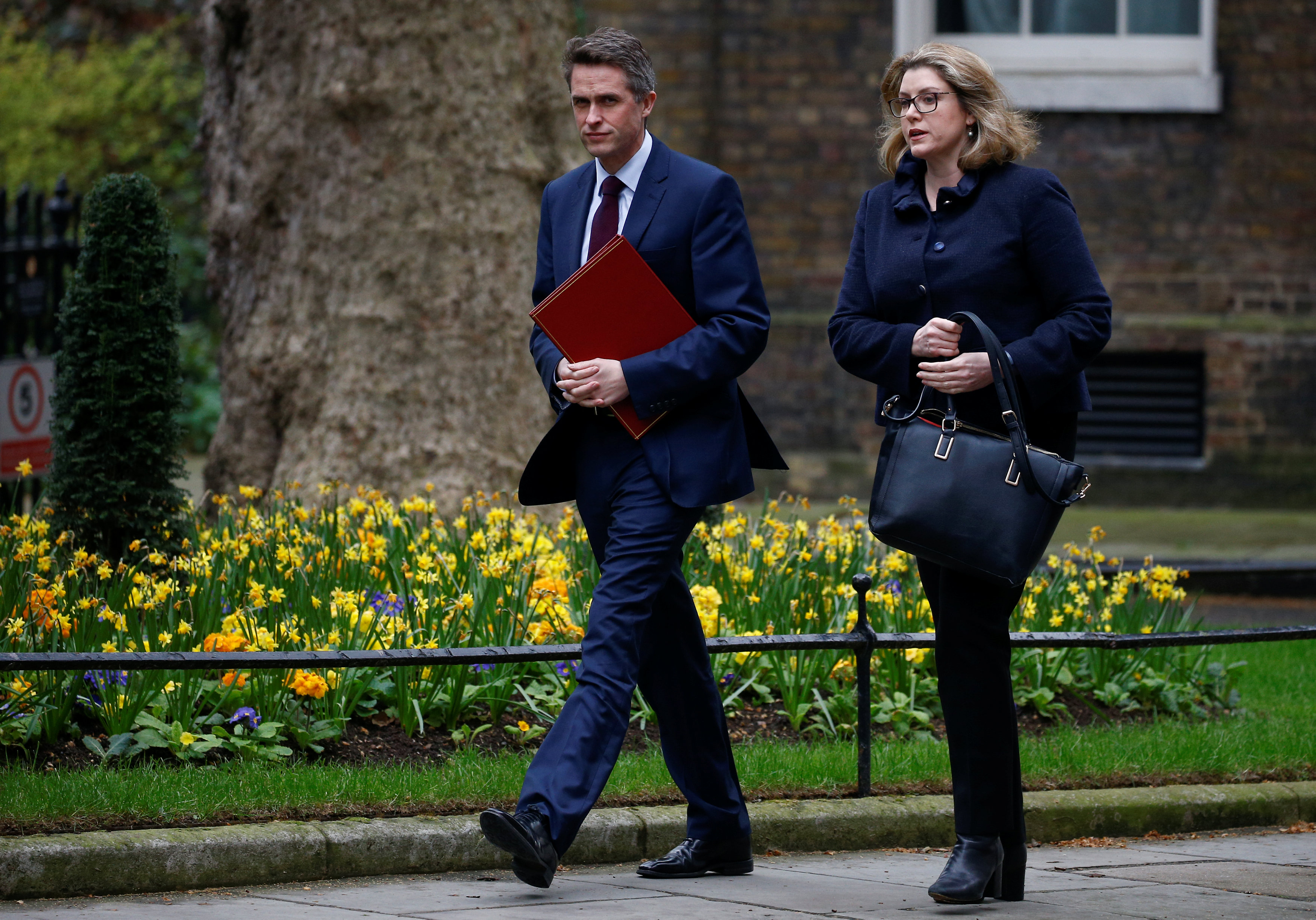 Bộ trưởng Quốc phòng Anh Gavin Williamson vừa bị cách chức và Penny Mordaunt (phải) sẽ lên thay thế. Photo Courtesy: Reuters Bà Penny Mordaunt hôm 1-5 được bộ nhiệm làm bộ trưởng quốc phòng Anh sau khi ông Gavin Williamson;bị sa thải vì cáo buộc rò rỉ thông tin liên quan đến Tập đoàn công nghệ Huawei của Trung Quốc.