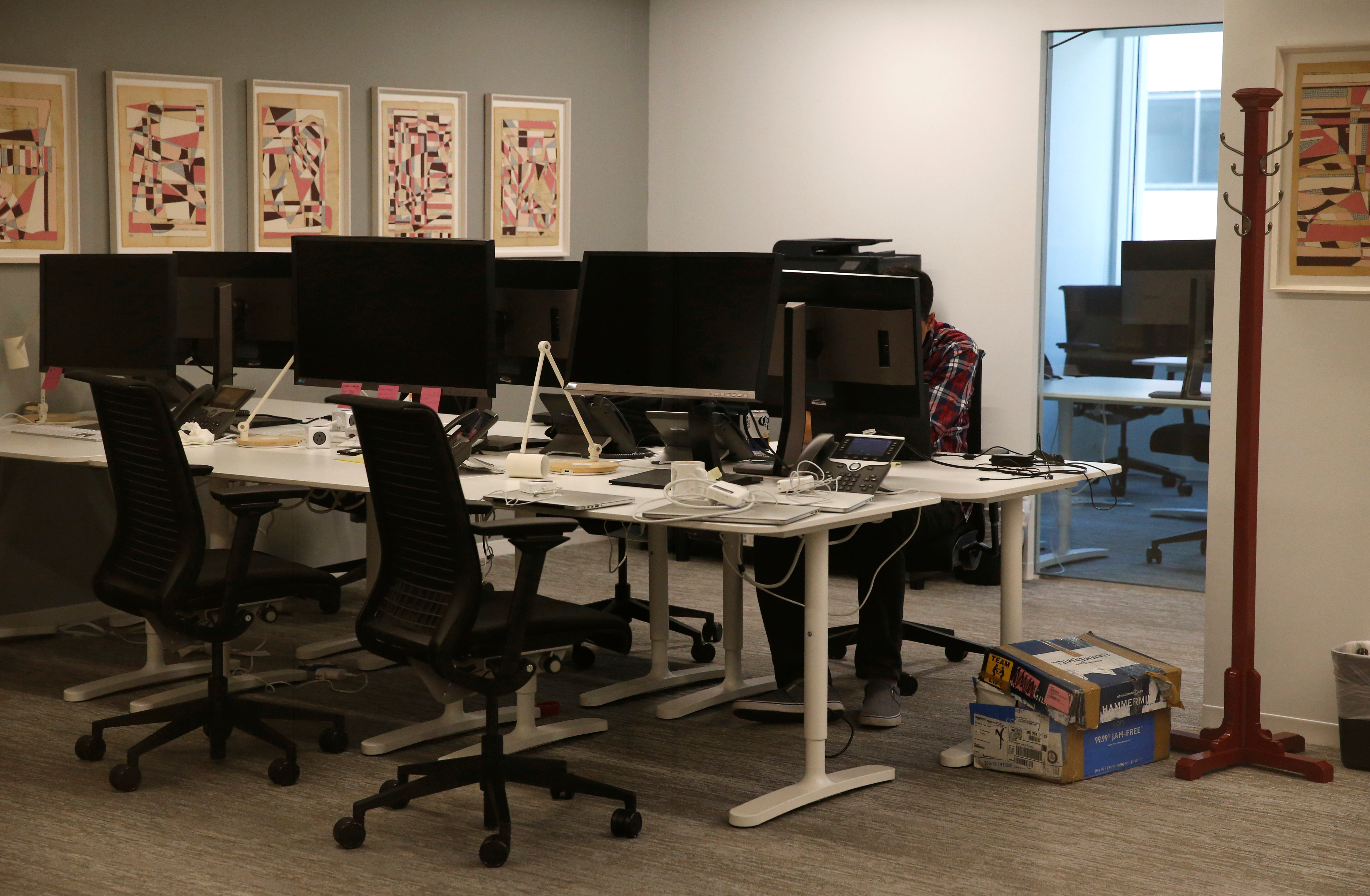 Một nhân viên đang ngồi làm việc tại văn phòng của Cambridge Analytica ở Washington hôm 2.5.2018. Photo Courtesy: Reuters