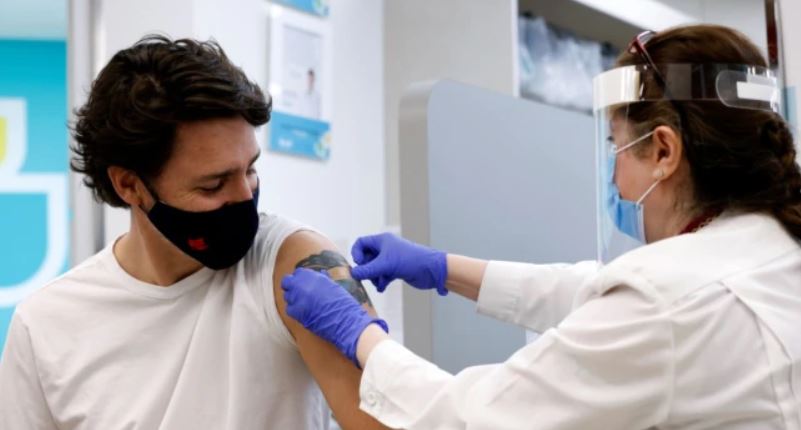Thủ tướng Canada Justin Trudeau được tiêm vaccine AstraZeneca tại một tiệm thuốc ở Ottawa, Ontario, Canada, ngày 23/4/2021. Photo courtesy: REUTERS