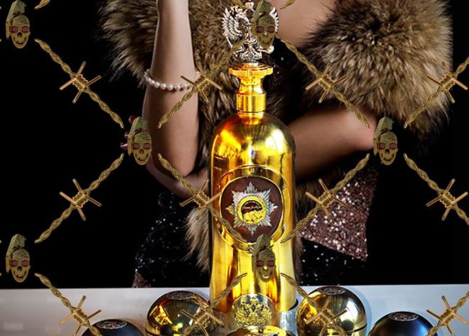 Chai rượu này – được làm từ vàng, bạc và có nắp nạm kim cương – được mượn đến một quán rượu ở thủ đô Copenhagen, nơi trưng bày bộ sưu tập rượu vodka.