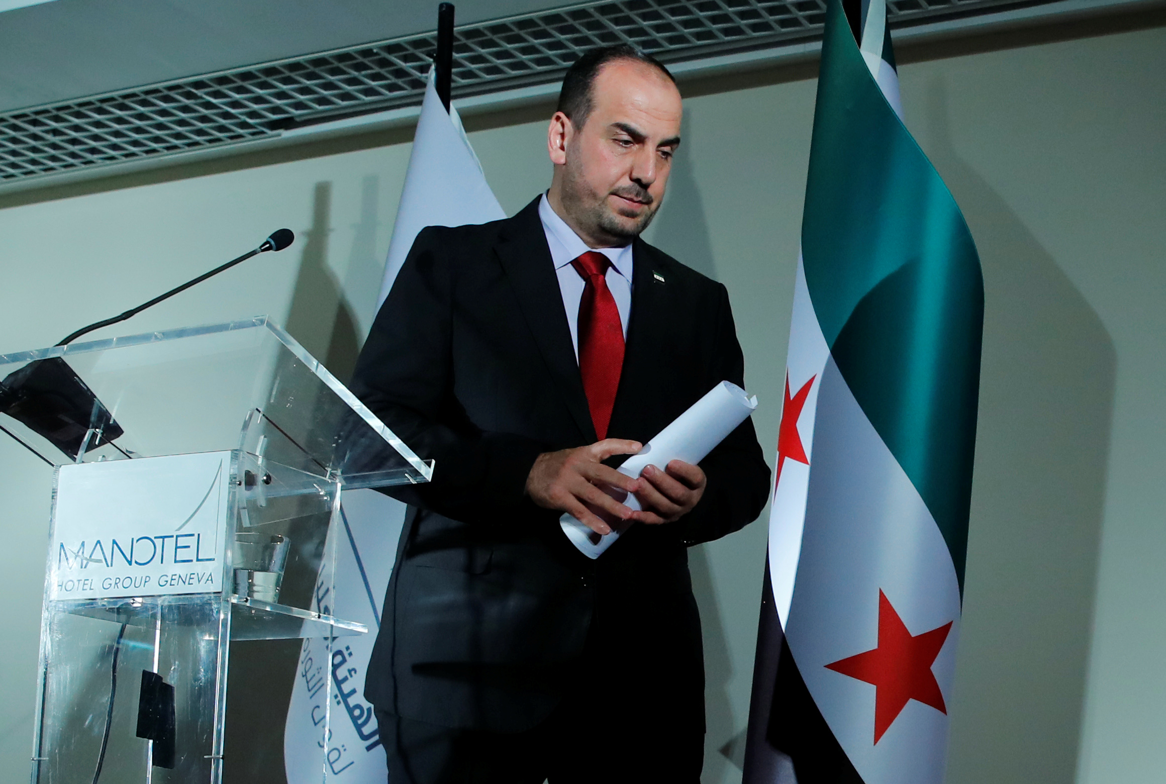 Nasr al-Hariri, người đứng đầu phái đoàn đàm phán của Syria tại Geneva hôm 27.11.2017. Photo Courtesy: Reuters