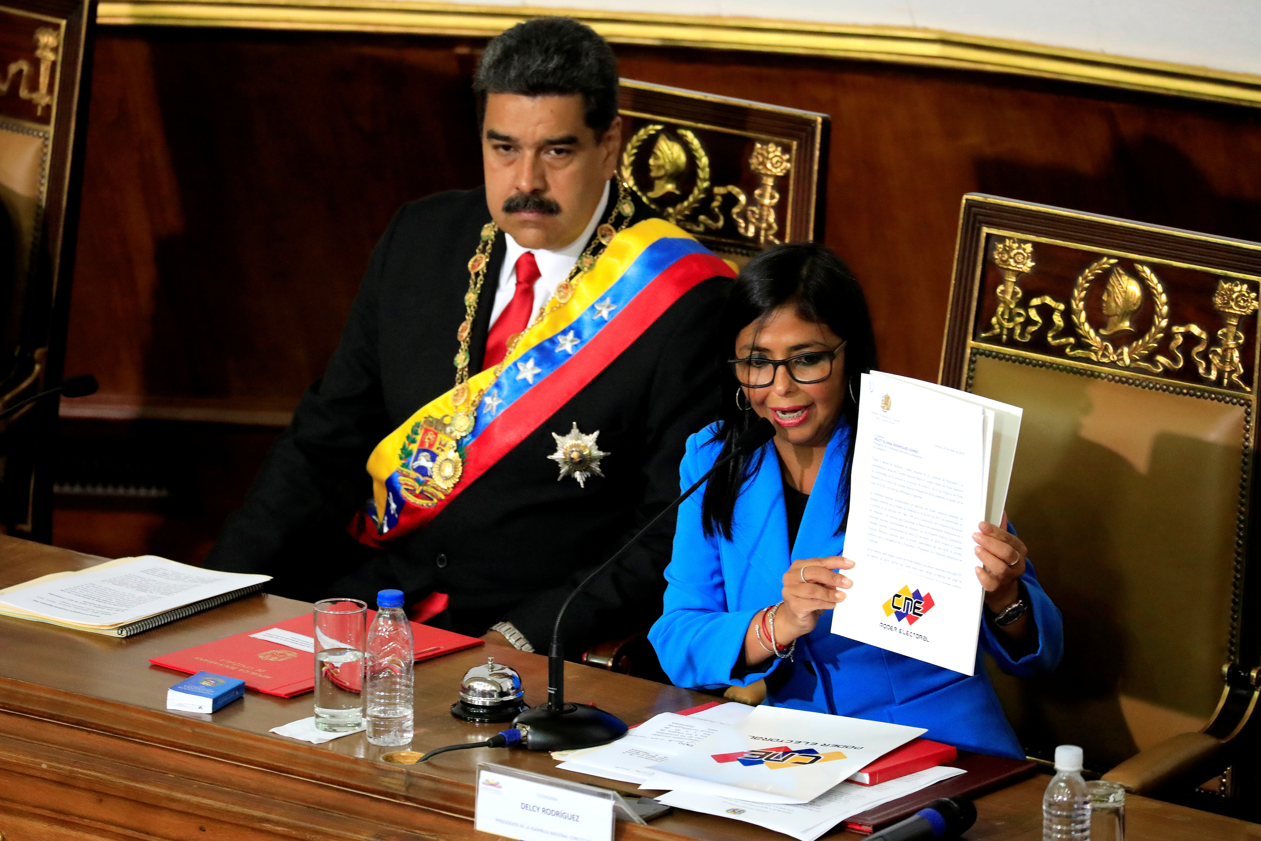 Bà Delcy Rodriguez (áo xanh) cùng Tổng thống Nicolas Maduro tại Caracas, Venezuela hôm 24.5.2018. Photo Courtesy: Reuters Ngày 14.6, Tổng thống tái đắc cử của Venezuela Nicolas Maduro thông báo bổ nhiệm bà Delcy Rodriguez, Chủ tịch Quốc hội lập hiến, làm Phó Tổng thống thay ông Tareck El Aisami. Đây là một phần trong nỗ lực cải tổ Nội các của Tổng thống Nicolas Maduro sau khi ông tái cử tháng trước.