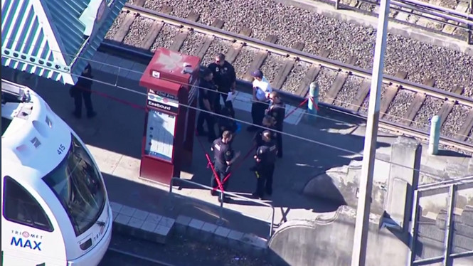 Cảnh sát có mặt tại hiện trường vụ tấn công bằng dao ở Portland. Photo Courtesy: Porland. Một người đàn ông đã đâm chết hai người và làm bị thương một người khác sau khi hô một tràng rủa xả chống Hồi giáo trên một chuyến tàu ở Portland (Mỹ).