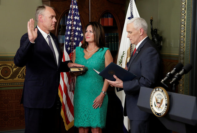 Ông Zinke tuyên thệ nhậm chức Bộ trưởng Nội vụ của Mỹ. Photo Courtesy: Reuters