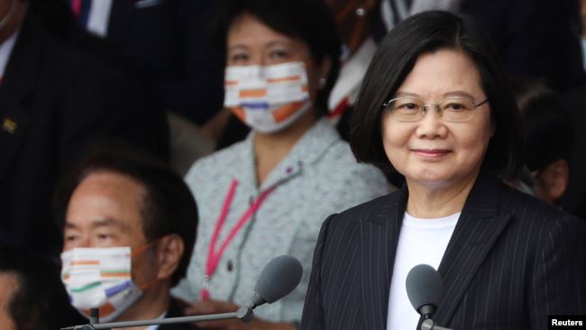 TT Đài Loan Thái Anh Văn phát biểu nhân Ngày lễ Quốc Khánh bên ngoài Phủ Tổng Thống ở Đài Bắc, Đài Loan, ngày 10/10/2020. Photo courtesy: REUTERS/Ann Wang