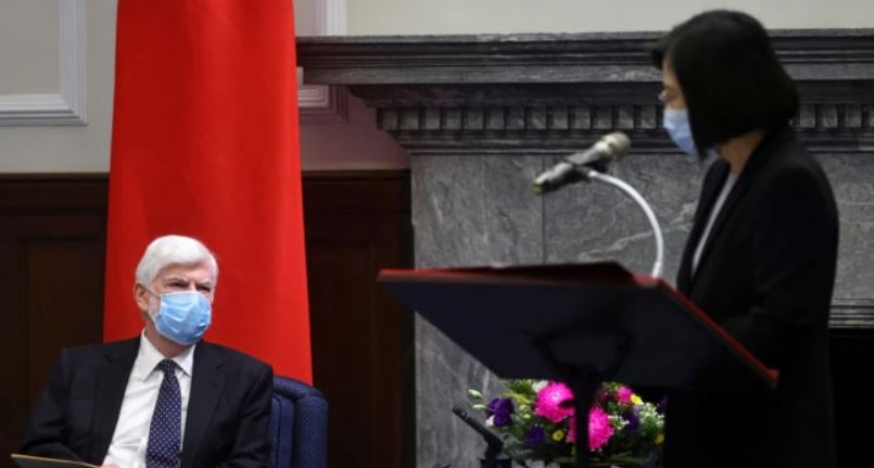 TT Đài Loan Thái Anh Văn gặp cựu Thượng nghị sĩ Chris Dodd và phái đoàn Mỹ tại văn phòng TT ở Đài Bắc, Đài Loan, ngày 15/4/2021. Photo courtesy: REUTERS/Ann Wang/Pool2021