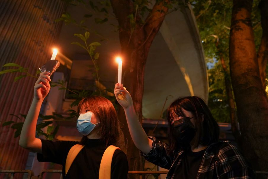 Thắp nến tại Hong Kong tưởng niệm nạn nhân vụ thảm sát Thiên An Môn năm 1989 tại Bắc Kinh. Ảnh chụp hôm 4/6/2021. Photo courtesy: REUTERS