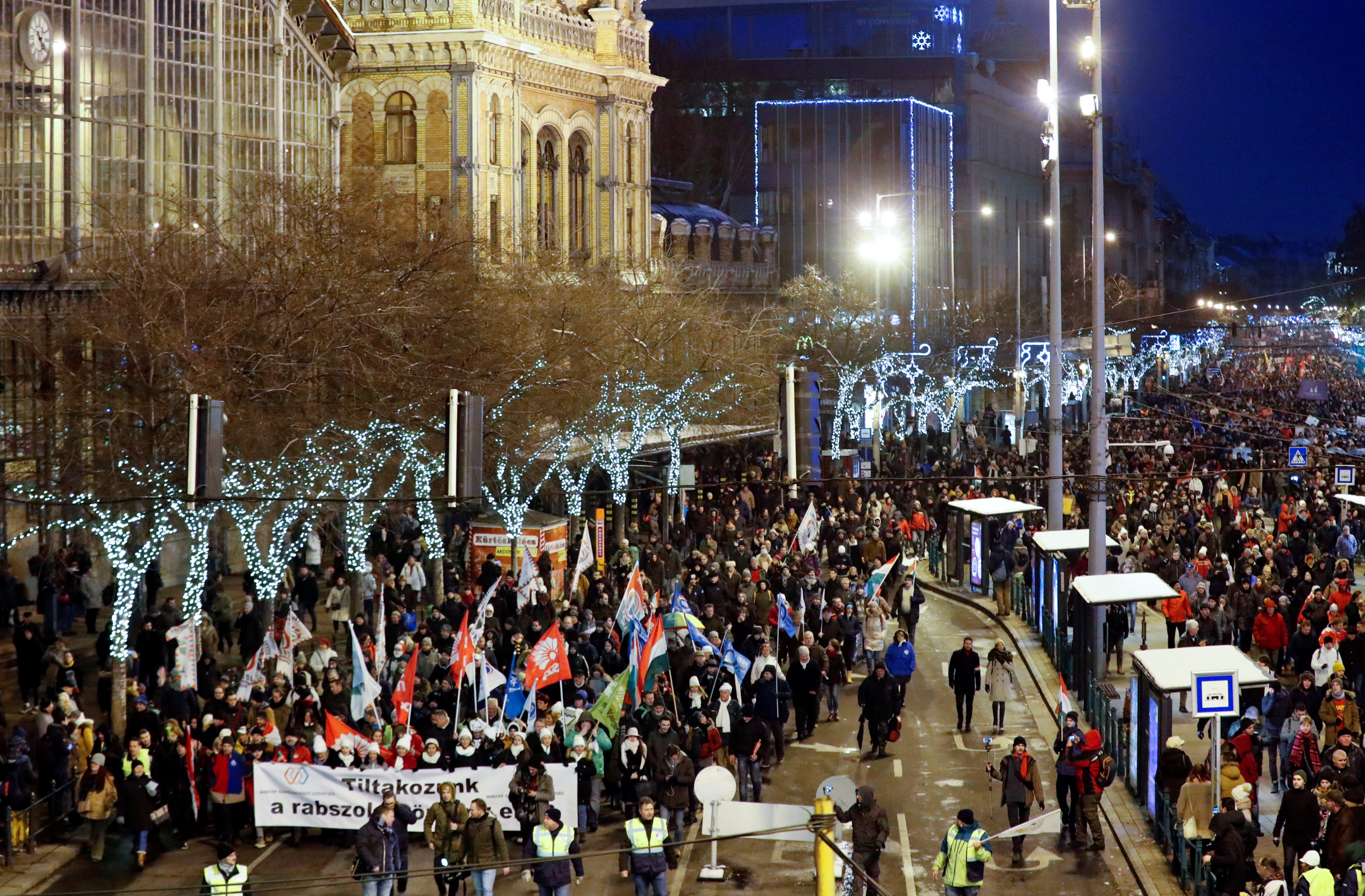 Rừng’ người biểu tình ở Budapest cuối hôm 16.12.2018. Photo Courtesy: Reuters