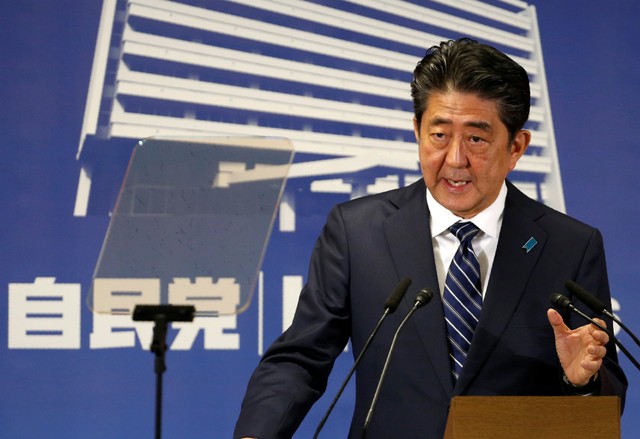 Thủ tướng Shinzo Abe, lãnh đạo đảng Dân chủ Tự do (LDP), xuất hiện tại một buổi họp báo sau cuộc bầu cử Hạ viện Nhật kết thúc vào tối 23.10. Photo Courtesy: Reuters Kết quả của cuộc bầu cử tại Nhật Bản ngày 22.10 cho thấy đảng Dân chủ Tự do của đương kim thủ tướng Nhật Bản Shinzo Abe giành thắng lợi lớn và chiếm đa số ghế tại Hạ viện Nhật Bản.