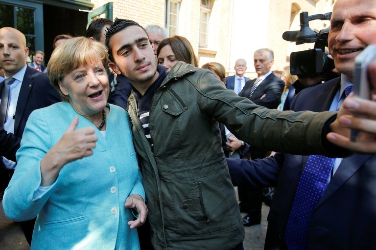 Thủ tướng Đức chụp ảnh cùng một người tị nạn Syria. Photo Courtesy: Reuters Ngày 9.11, đảng Sự lựa chọn vì nước Đức (AfD) theo đường lối cực hữu và dân túy đã lên tiếng kêu gọi một thỏa thuận hồi hương hơn nửa triệu người tị nạn Syria hiện đang sinh sống tại Đức.