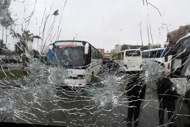 Đoạn phim do Đài truyền hình quốc gia Syria công bố cho thấy hai chiếc xe bus bị hư hỏng nặng, máu và giày dép nằm rải rác trên mặt đất.