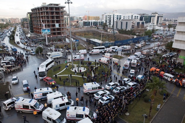 Vào khoảng hoảng 15 giờ chiều ngày 5.1 (giờ Thổ Nhĩ Kỳ), lúc có rất nhiều thẩm phán, luật sư ở cổng vào tòa án tại thành phố Izmir, một quả bom được gài trong xe hơi gần đó phát nổ, làm ít nhất 10 người bị thương và làm hư hại nhiều xe đậu gần đó.