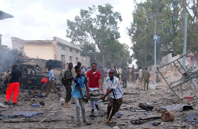 Nhóm cực đoan Al-Shabab đã nhận gây ra vụ tấn công và cho biết các tay súng của nhóm vẫn đang chiến đấu ở trong khách sạn. Vụ đánh bom này xảy ra chỉ hai tuần sau vụ đánh bom xe tải kinh hoàng ở thủ đô Mogadishu làm 350 người thiệt mạng.
