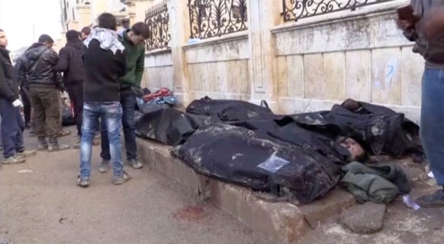 Thi thể nạn nhân được đặt trong những chiếc túi sau vụ đánh bom ở Azaz hôm 7.1.2017. Photo courtesy: Reuters Hơn 60 người chết và bị thương trong một vụ đánh bom xe xảy ra vào chiều nay 7/1 (giờ Trung Đông) tại thành phố Azaz, miền Bắc Syria.