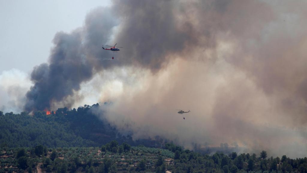 Trực thăng thả nước để cố dập tắt cháy rừng do nắng nóng ở vùng Tarragona, Tây Ban Nha, ngày 27/06/2019. Photo courtesy: Reuters Đợt nóng cháy da lên đỉnh điểm, với nhiệt độ tới 44°C, trong ngày thứ sáu 28/06/2019 tại bốn tỉnh miền nam nước Pháp. Khoảng 4000 trường tiểu học quyết định cho học sinh nghỉ học, theo thông báo của thủ tướng Edouard Philippe.