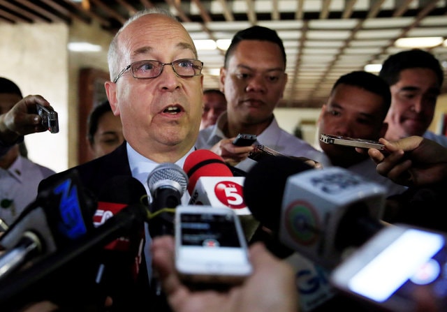 Trợ lý ngoại trưởng Mỹ phụ trách Đông Á và Thái Bình Dương Daniel Russel trả lời phỏng vấn sau cuộc gặp với Ngoại trưởng Phi Luật Tân ngày 24.10. Photo Courtesy: Reuters