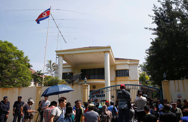 Phóng viên tụ tập bên ngoài Đại sứ quán của Triều Tiên tại Kuala Lumpur. Photo Courtesy: Reuters