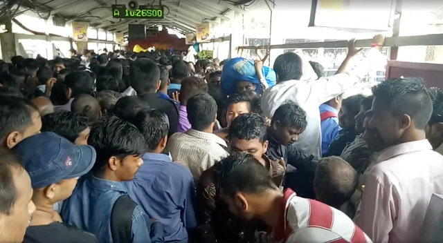 Cảnh chật chọi tại ga Elphinstone vào sáng 29.9.2017. Photo courtesy: Reuters