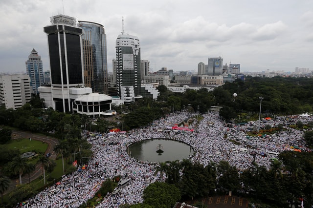 Hàng chục ngàn người Hồi giáo tham gia biểu tình ở thủ đô Jakarta, Nam Dương ngày 2.12, yêu cầu bắt giữ thị trưởng Jakarta Basuki Tjahaja Purnama, một người gốc Hoa theo Thiên chúa giáo bị cáo buộc phỉ báng đạo Hồi.