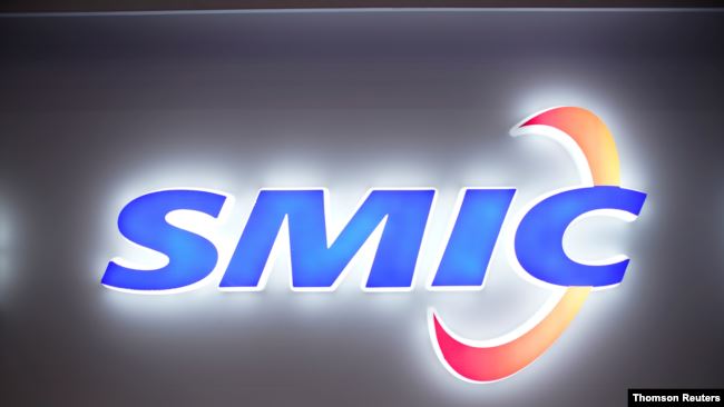 Logo của công ty SMIC, nhà sản xuất chip hàng đầu của Trung Quốc, là một trong hàng chục công ty mới bị Bộ Thương Mại Mỹ đưa vào sổ đen. Photo courtesy: Reuters