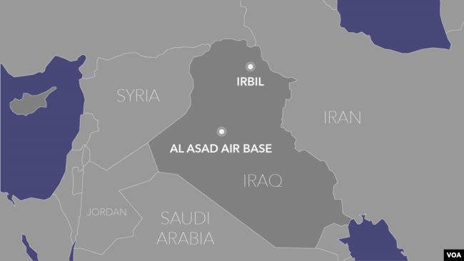 Người phát ngôn Lầu Năm Góc Jonathan Hoffman nói trong một tuyên bố rằng các căn cứ bị nhắm mục tiêu là căn cứ không quân al-Asad và một cơ sở khác ở Erbil, Iraq.