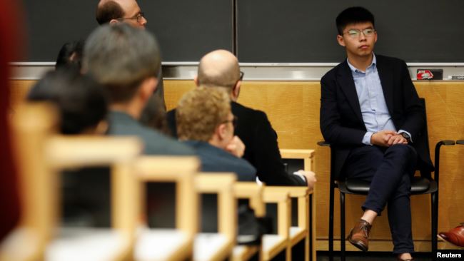 Nhà hoạt động ủng hộ dân chủ Hong Kong Joshua Wong dự một buổi hội luận tại Trường Luật Đại học Columbia ở New York City, ngày 13 tháng 9, 2019. Photo courtesy: Reuters