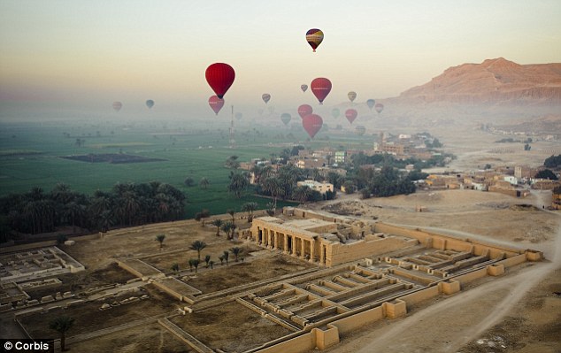 Ngắm nhìn khung cảnh bằng kinh khí cầu là một hoạt động yêu thích của du khách khi đến Ai Cập. Photo Courtesy: Corbis Khinh khí cầu chở khoảng 20 người rơi xuống gần thành phố cổ Luxor, Ai Cập, làm ít nhất một người chết.
