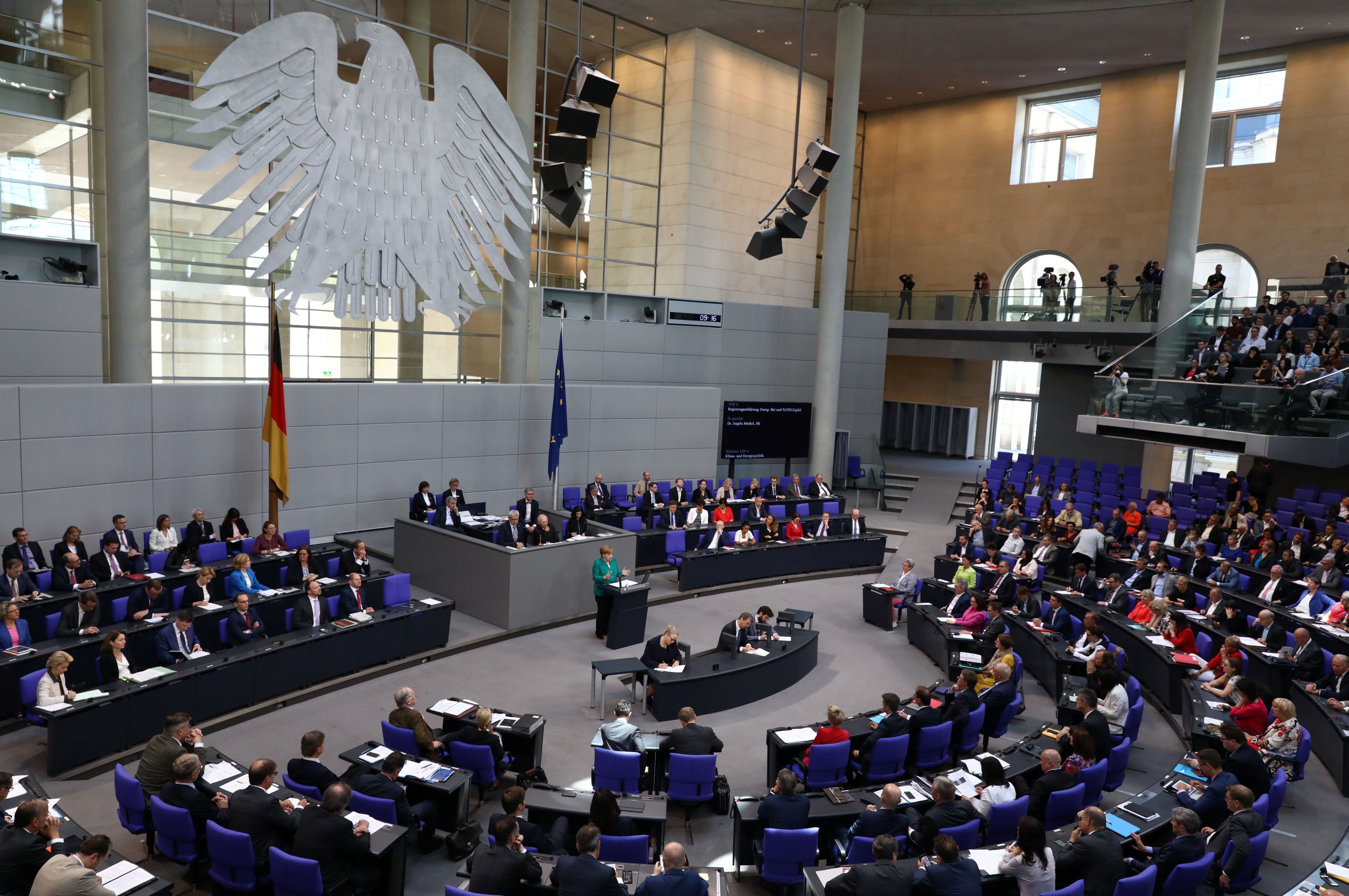 Thủ tướng Đức Angela Merkel chủ trì cuộc họp ở Quốc hội Đức hôm 28.6.2018. Photo Courtesy: Reuters Hôm nay (28.6), Hội nghị thượng đỉnh Liên minh châu Âu (EU) khai mạc tại Brussels, Bỉ. Một trong những nội dung thảo luận quan trọng nhất được đưa ra là vấn đề người di cư.