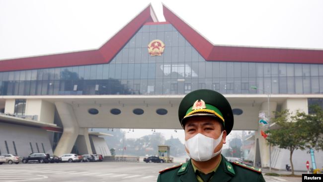Một sĩ quan biên phòng của Việt Nam đứng gác tại cửa khẩu Hữu Nghị giáp với biên giới tỉnh Quảng Tây của Trung Quốc, ngày 20 tháng 2, 2020. Photo courtesy: Reuters Nền kinh tế lớn thứ nhì thế giới co cụm 6,8% trong quý 1- kết thúc vào tháng Ba, so với cùng kỳ năm ngoái giữa lúc các hãng xưởng, văn phòng và trung tâm mua sắm đóng cửa để khống chế dịch, theo các số liệu chính thức công bố hôm thứ Sáu 17/4.