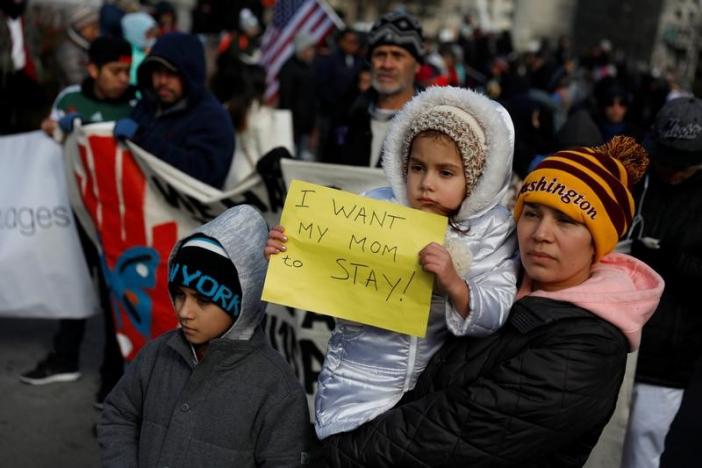 Một em bé tham dự buổi biểu tình cùng nhiều người tại Washington DC hôm 16.2.2017 để phản đối chính sách cấm nhập cư của ông Trump. Photo Courtesy: Reuters Bộ trưởng An ninh nội địa Mỹ John Kelly cho biết phiên bản mới của lệnh cấm nhập cảnh sắp được Tổng thống Mỹ Donald Trump ban hành sẽ không ảnh hưởng tới người được cấp thẻ xanh (hay còn gọi là thường trú nhân).
