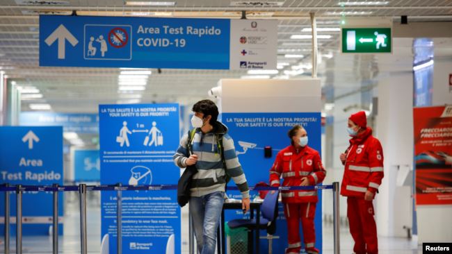 Sân bay Fiumicino của Italy thông báo ngưng chuyến bay đến Anh, 20/12/2020. Photo courtesy: Reuters