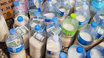 Những chai nhựa chứa gạo và một ít tiền được một số người sống tại Hàn Quốc thả trôi theo dòng biển về Triều Tiên. Photo Courtesy: Lim Yun Suk Nhiều chai nhựa chứa gạo và tiền đã được một số công dân Hàn Quốc và công dân Triều Tiên lưu vong thả trôi theo dòng hải lưu về Triều Tiên với hy vọng người dân Bắc Hàn sẽ không bỏ rơi láng giềng nếu chiến tranh nổ ra trên bán đảo Triều Tiên.