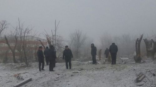 Lực lượng cứu hộ tại hiện trường máy bay rơi. Photo Courtesy: RFERL