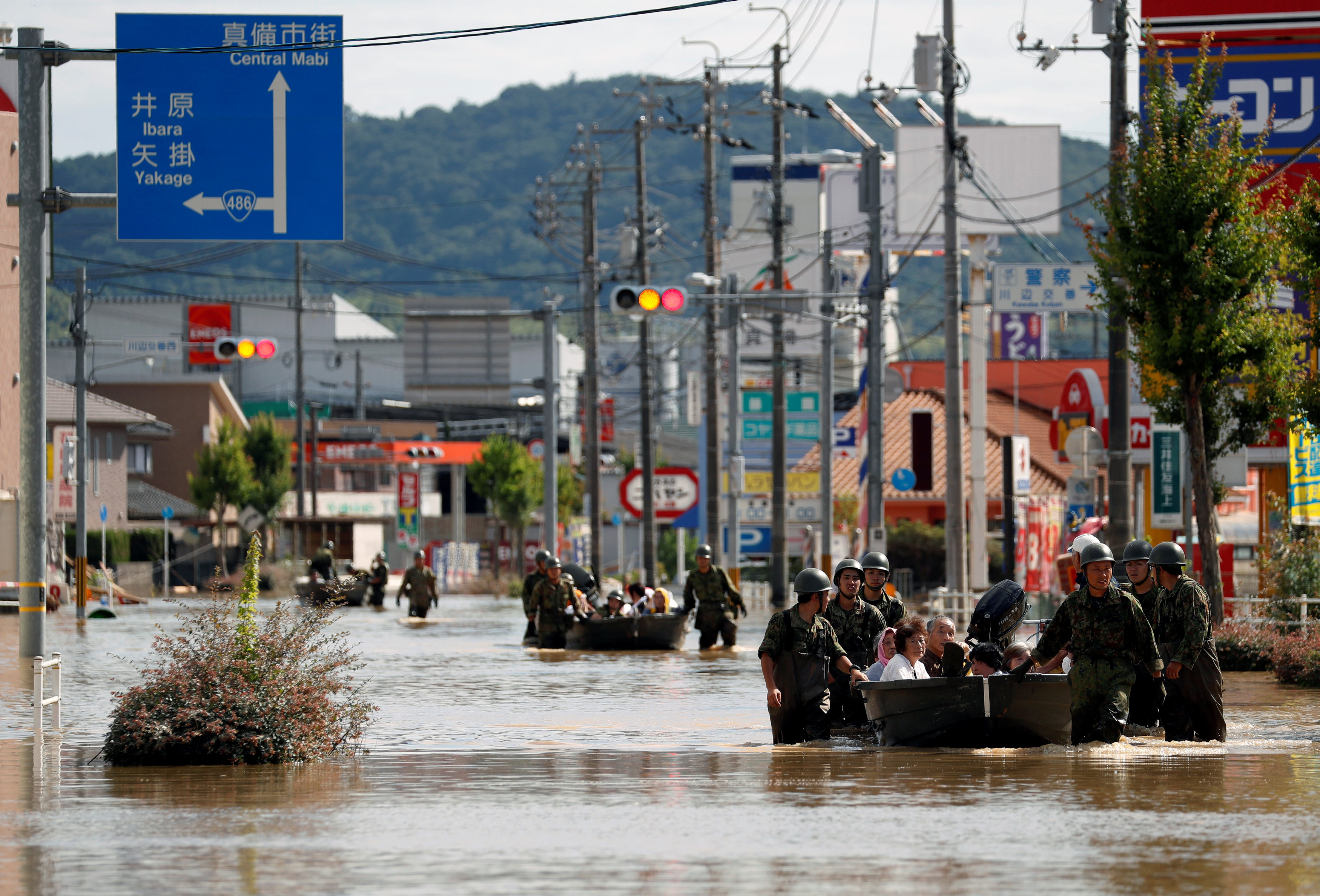Hơn 50,000 công nhân, cảnh sát, và sỹ quan quân đội cũng được huy động để đối phó với thảm họa. Nhiều ngôi làng bị nhấn chìm hoàn toàn trong nước lũ. Thứ duy nhất mà người ta nhìn thấy ở khu vực này là ngọn đèn tín hiệu giao thông.
