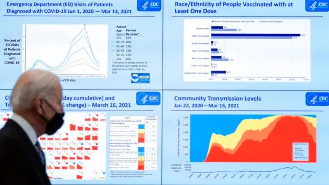 Tổng thống Joe Biden thăm Trung tâm Kiểm soát và Phòng ngừa Dịch bệnh Mỹ (CDC) ở Atlanta, Georgia, ngày 19/3/2021. Photo courtesy: VOA Số người nhiễm COVID tại Mỹ tăng 5% lên hơn 394.000 trường hợp trong tuần qua. Đây là đợt tăng đầu tiên sau khi đã giảm liên tiếp trong 9 tuần, theo phân tích của Reuters dựa trên các dữ liệu của tiểu bang, quận và Trung tâm Kiểm soát và Phòng ngừa Dịch bệnh Mỹ (CDC).