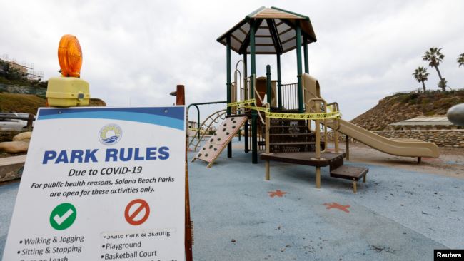 Sân chơi của trẻ em tại bãi biển Solana, California, bị đóng cửa (ảnh chụp ngày 7/12/2020). Photo courtesy: Reuters