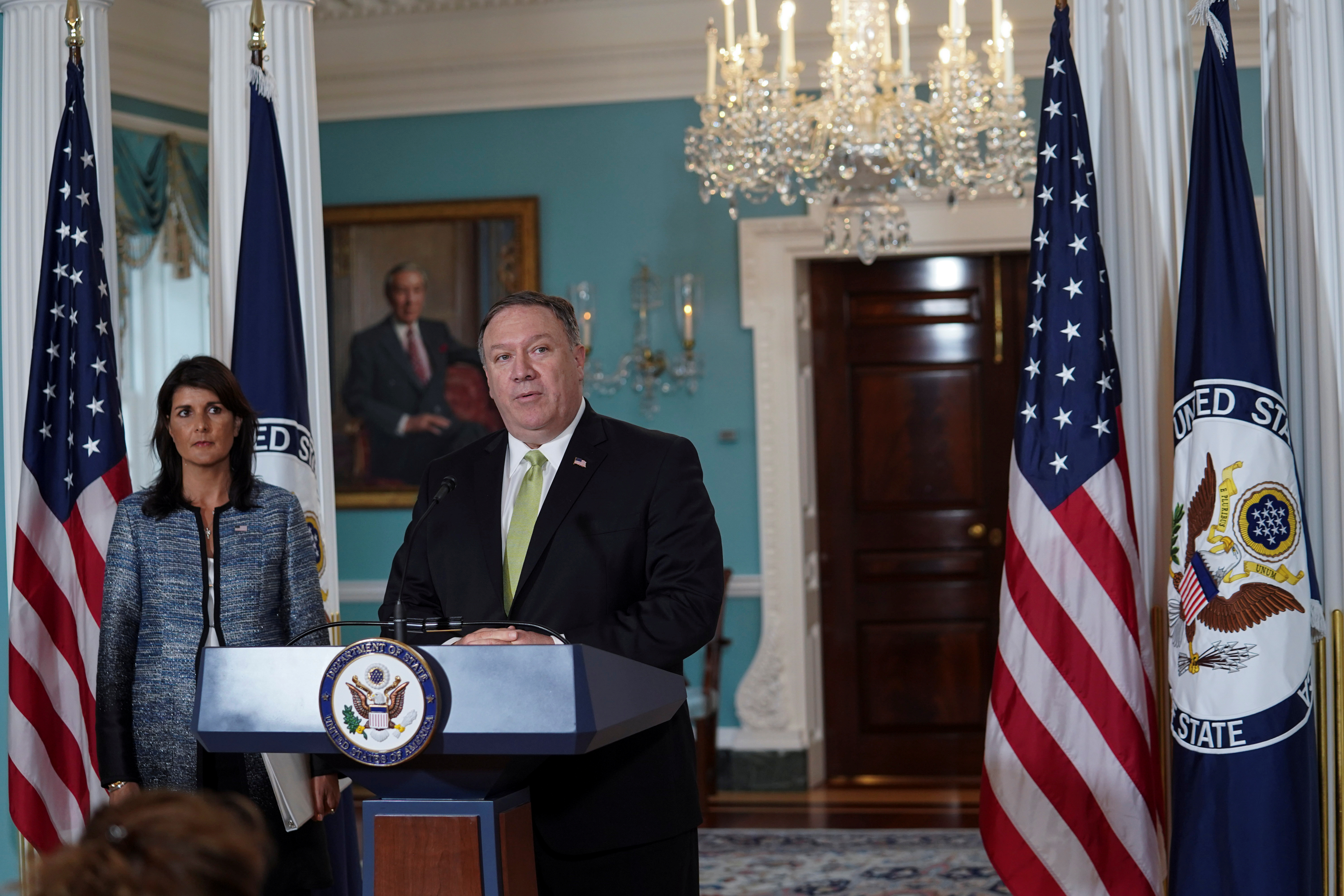 Trong cuộc họp báo cùng Ngoại trưởng Mike Pompeo, Đại sứ Mỹ Nikki Haley chỉ trích Nga, Trung Quốc, Cuba và Ai Cập về những hành động mà Washington cho là phá hoại nỗ lực nhằm cải cách Hội đồng Nhân quyền Liên Hiệp Quốc (UNHRC), theo Reuters ngày 20.6.