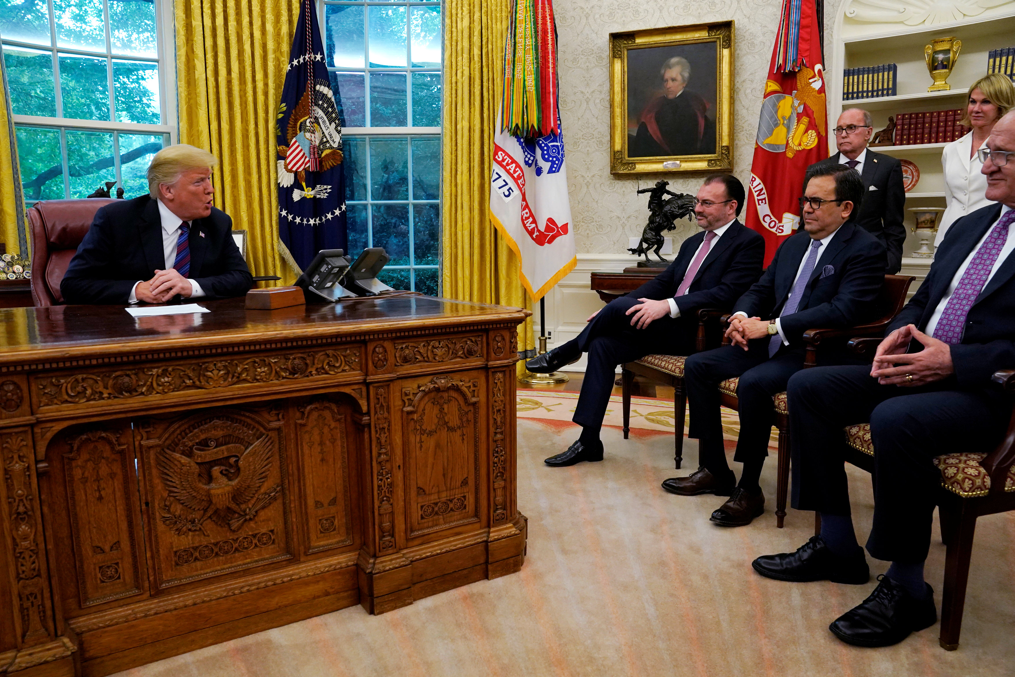 Tổng thống Donald Trump trong phiên họp bàn về NAFTA hôm 27.8.2018. Photo Courtesy: Reuters Việc Mỹ và Mexico đạt được thoả thuận về NAFTA và đổi tên thành Hiệp định Thương mại Mỹ – Mexico đang làm dấy lên quan ngại ở Gia Nã Đại về nguy cơ nước này sẽ bị đẩy vào thế cô lập ngay tại chính sân nhà.